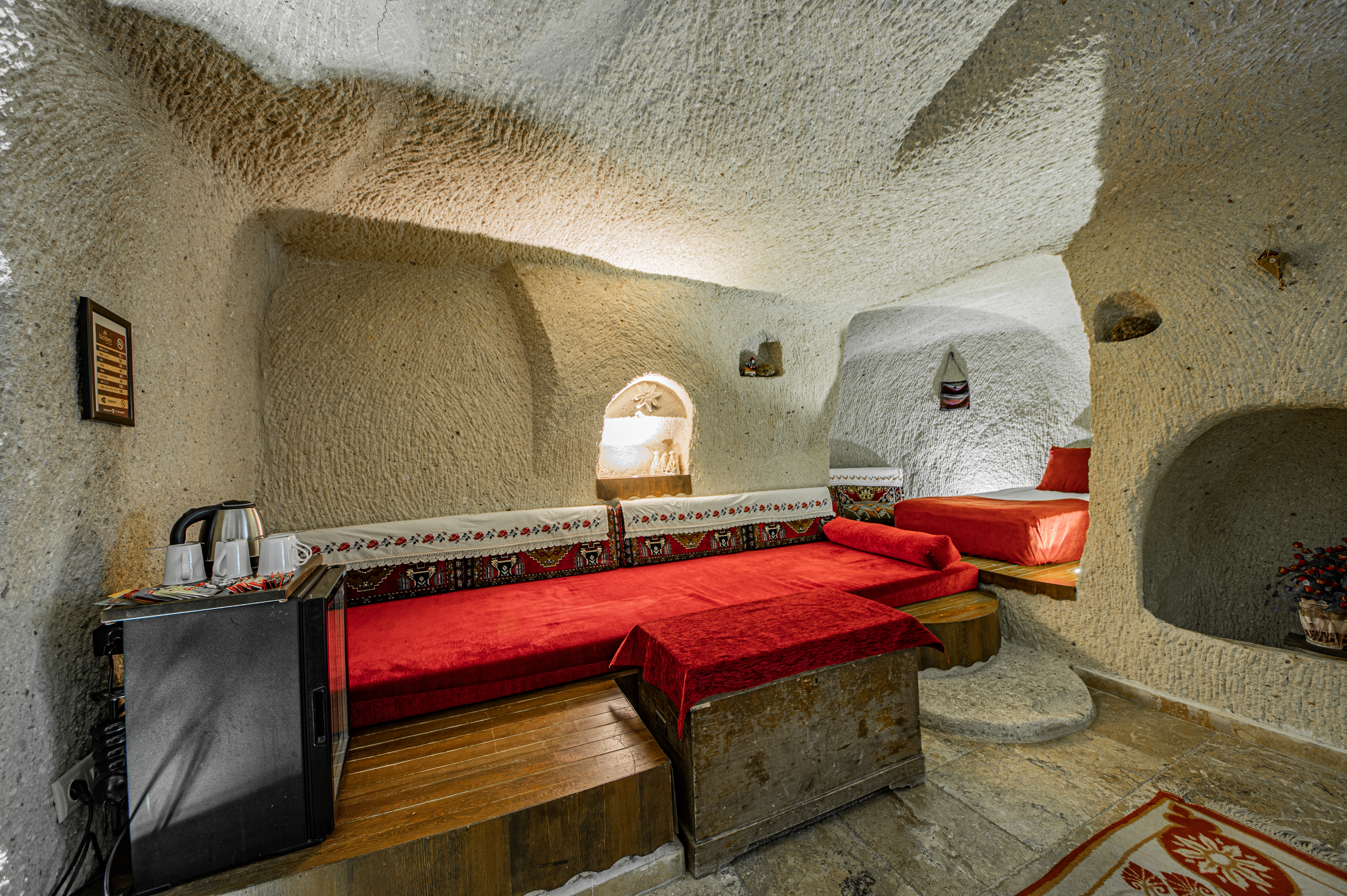 Located in the heart of Cappadocia, Göreme, Hidden Cave Hotel; its cave and stone rooms dating back to ancient times, were decorated in accordance with the historical structure of the region and were used as an old village house until 2014. As of 2014, it has been offered to tourism as a small family business. Our first goal is to reflect the historical and cultural values ​​of the region in the best way possible and to prioritize guest satisfaction.