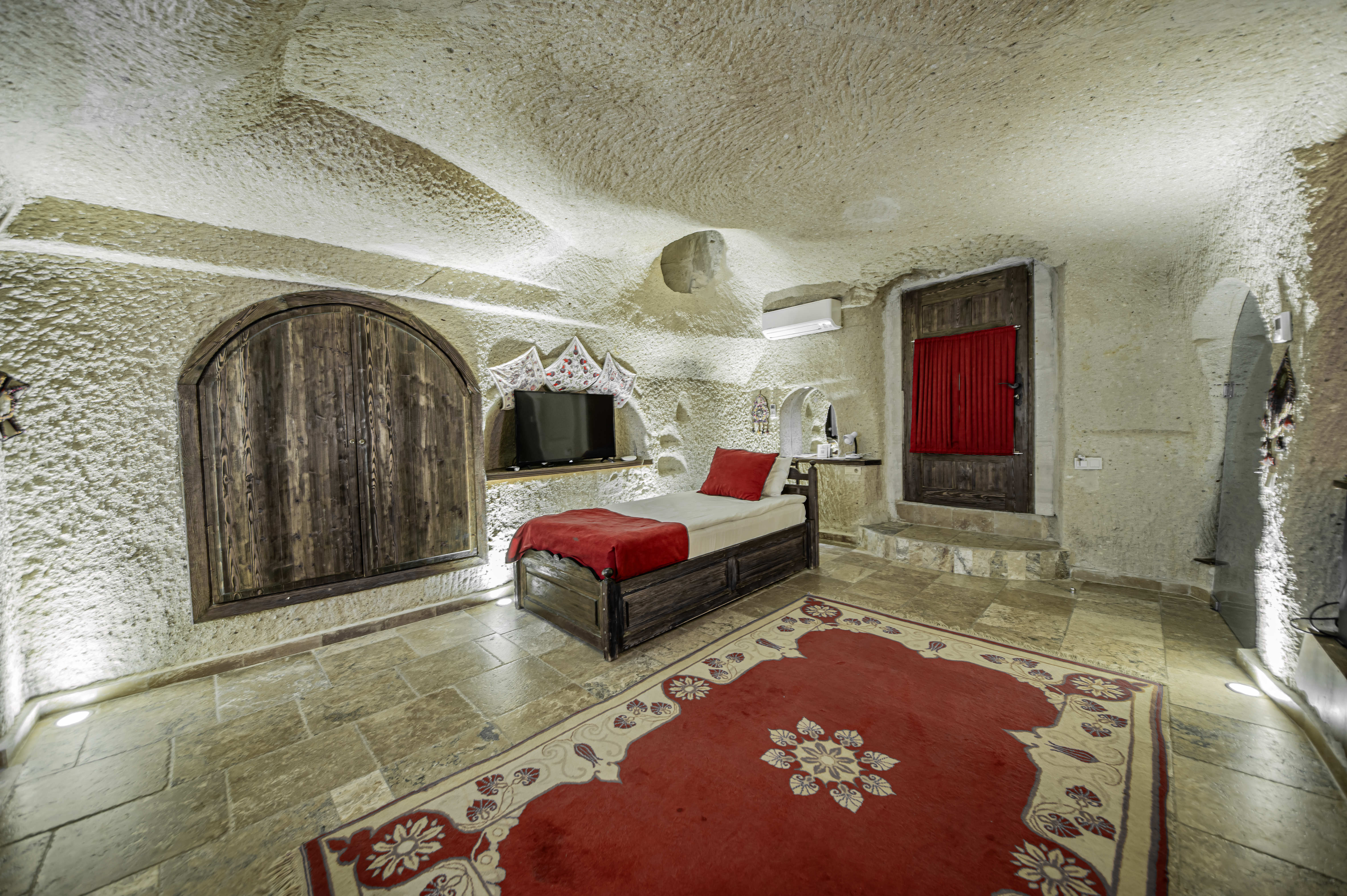 Hidden Cave Hotel is a small family business with 13 different cave and stone rooms. Each of our room is decorated differently in accordance with the local architecture.